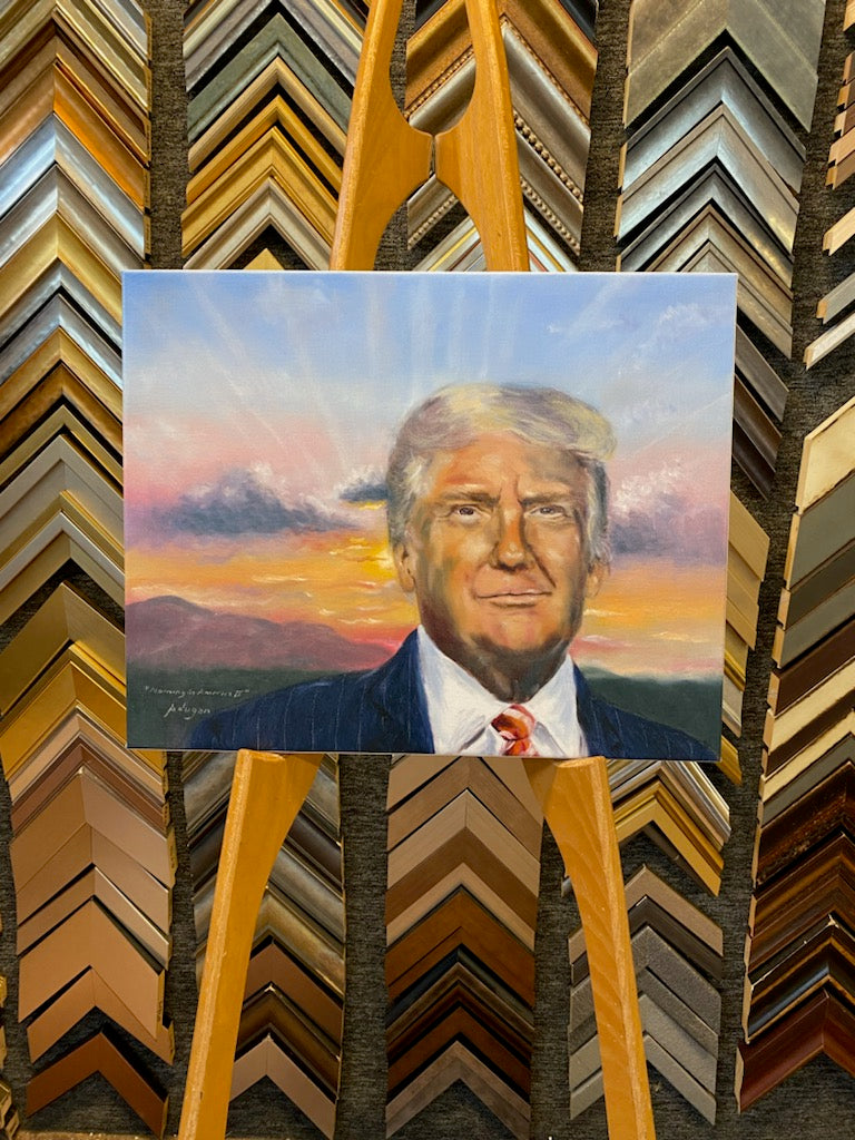 Just in time for Christmas and the run up to the mid term elections, you will be proud to display this beautiful piece of art in home or office. Or you can give this image of hope and the beginning of a new day, our 45th president Donald J. Trump, as a gift.